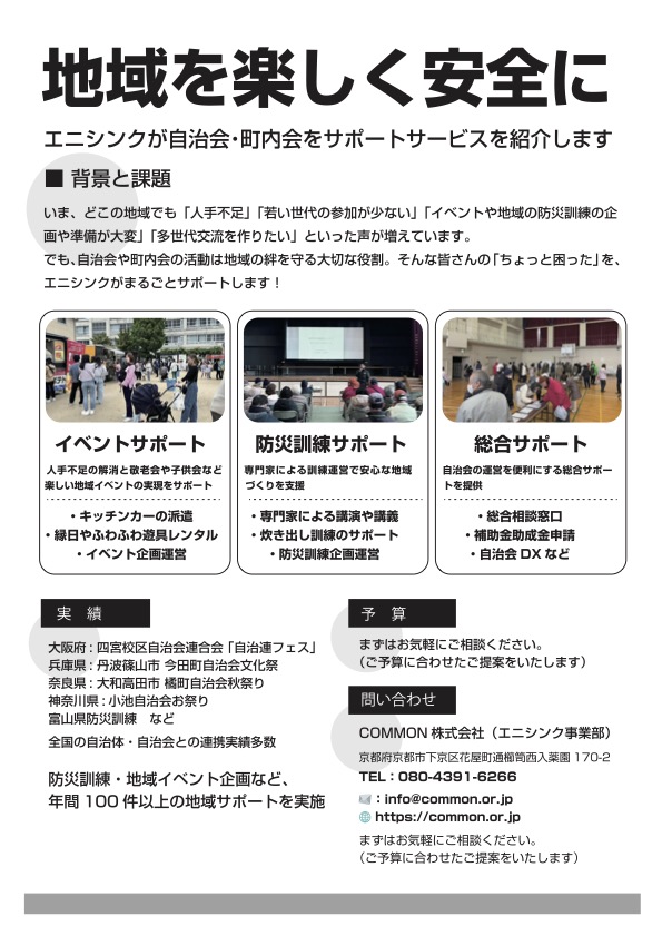 COMMONが展開する自治会支援事業「エニシンク」や「ジチレンジャー」を通じて、地域活動の“伴走者”として果たせる役割の大きさを改めて感じました。