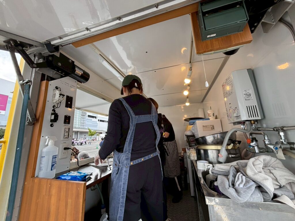 現場では、災害時を想定した実動訓練として、キッチンカーが被災者支援の拠点となることを想定し、温かい食事の提供・衛生管理・食材供給の流れを検証しました。