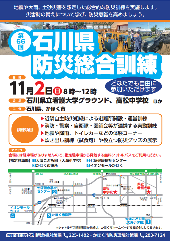今回は石川県から、令和7年(第66回)石川県防災総合訓練についてキッチンカーによる炊き出し訓練を実施したいとの要望があり参加に至りました。
