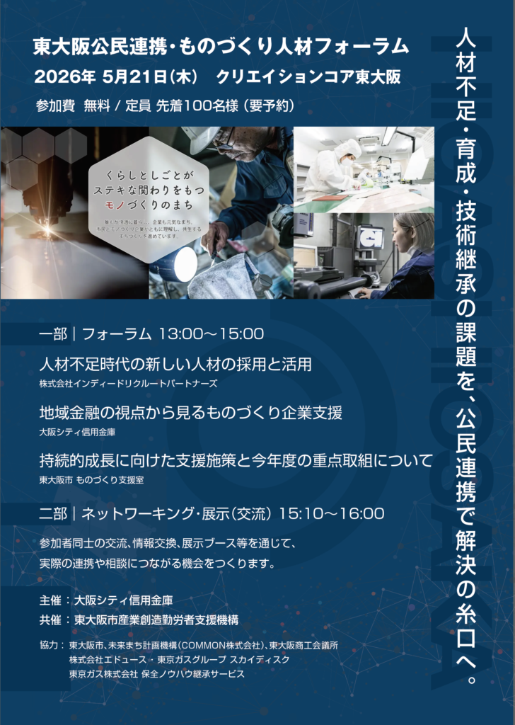 | 主催 | 大阪シティ信用金庫 共催:東大阪市産業創造勤労者支援機構 |